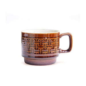 大島紬の代表柄である「秋名バラ柄」が一周ぐるっと浮き出ている珍しいマグカップです。