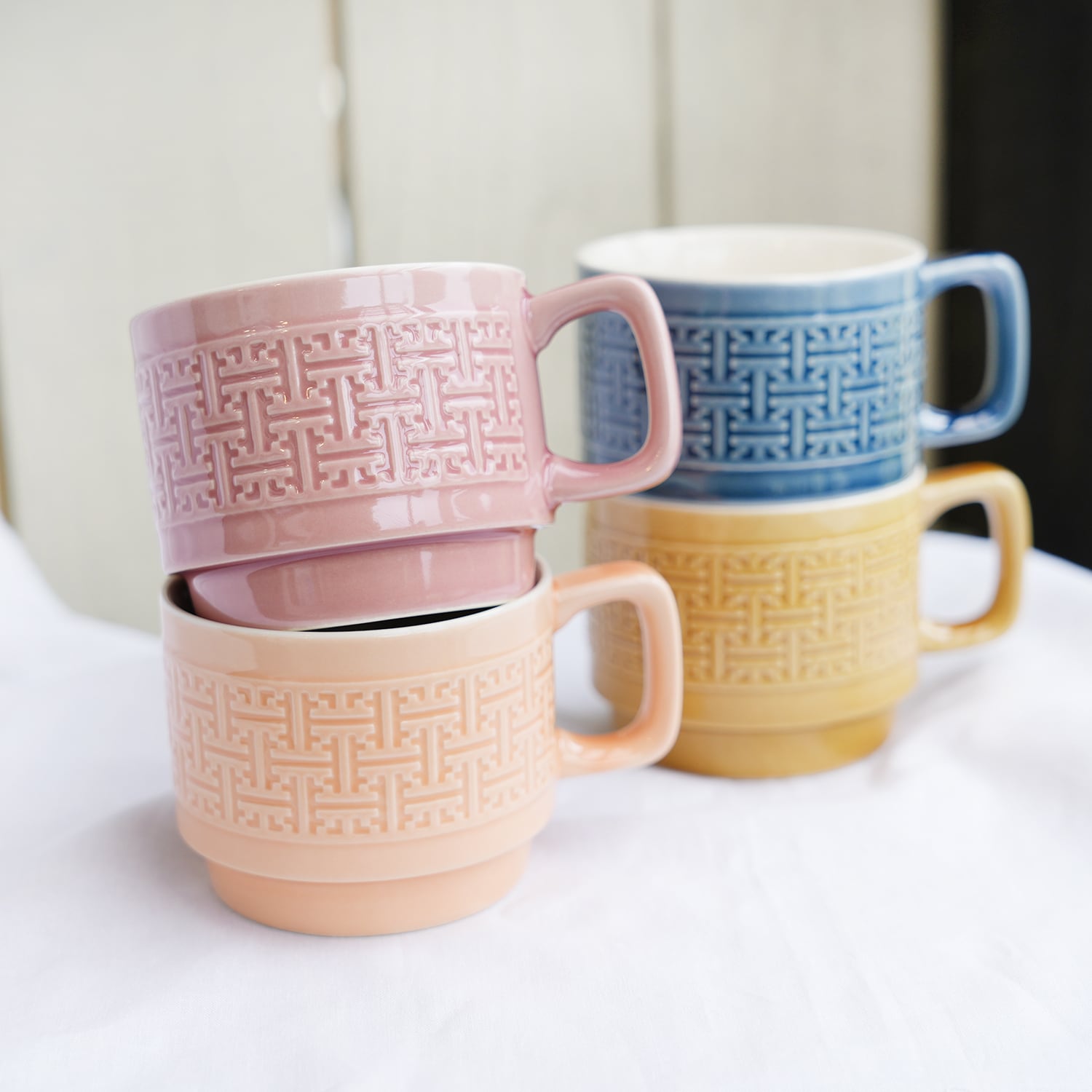 スタッキングタイプなので、同一型のマグカップと重ねて収納できます。